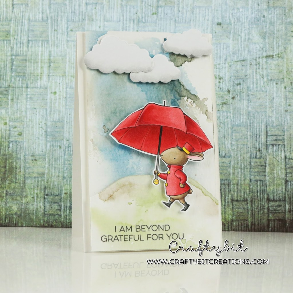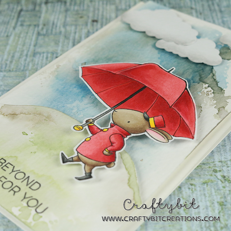 I masked off the little tassel on the stick that the adorable litte bunny was holding and then I drew a umbrella on top of it with a copic multiliner. I know that MFT do have an umberella (which I sadly don’t have, yet) so if you don’t wanna draw you could use that and do some more masking.