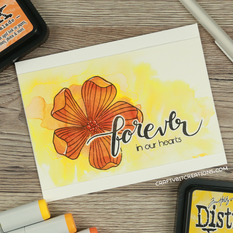 I have chosen to use the In Bloom stamp set and combined that with the older but still wonderful This Must Be Love stamp set. I’m also channeling my inner Kelly Latevola and playing with a combination of Distress Inks and Copic Pens. I haven’t had loads of time crafting lately, with me getting a new job and dyeing fabrics, the time sort of flew away. But I’m back at the craft table and hope to be able to stay there awhile.