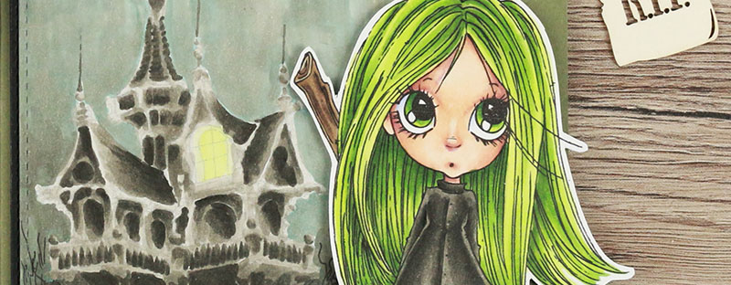 So I have a few steps that I go through when I create a card with a coloured background. This time around I didn’t add the focal image (Elphaba) to the background, instead I decided to colour her separately this makes placing a little bit easier as I do it after I coloured the images and there for can take the depth into account.