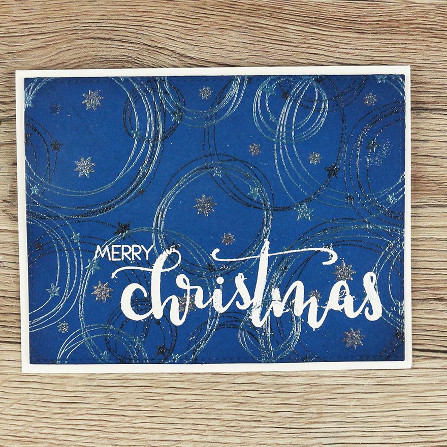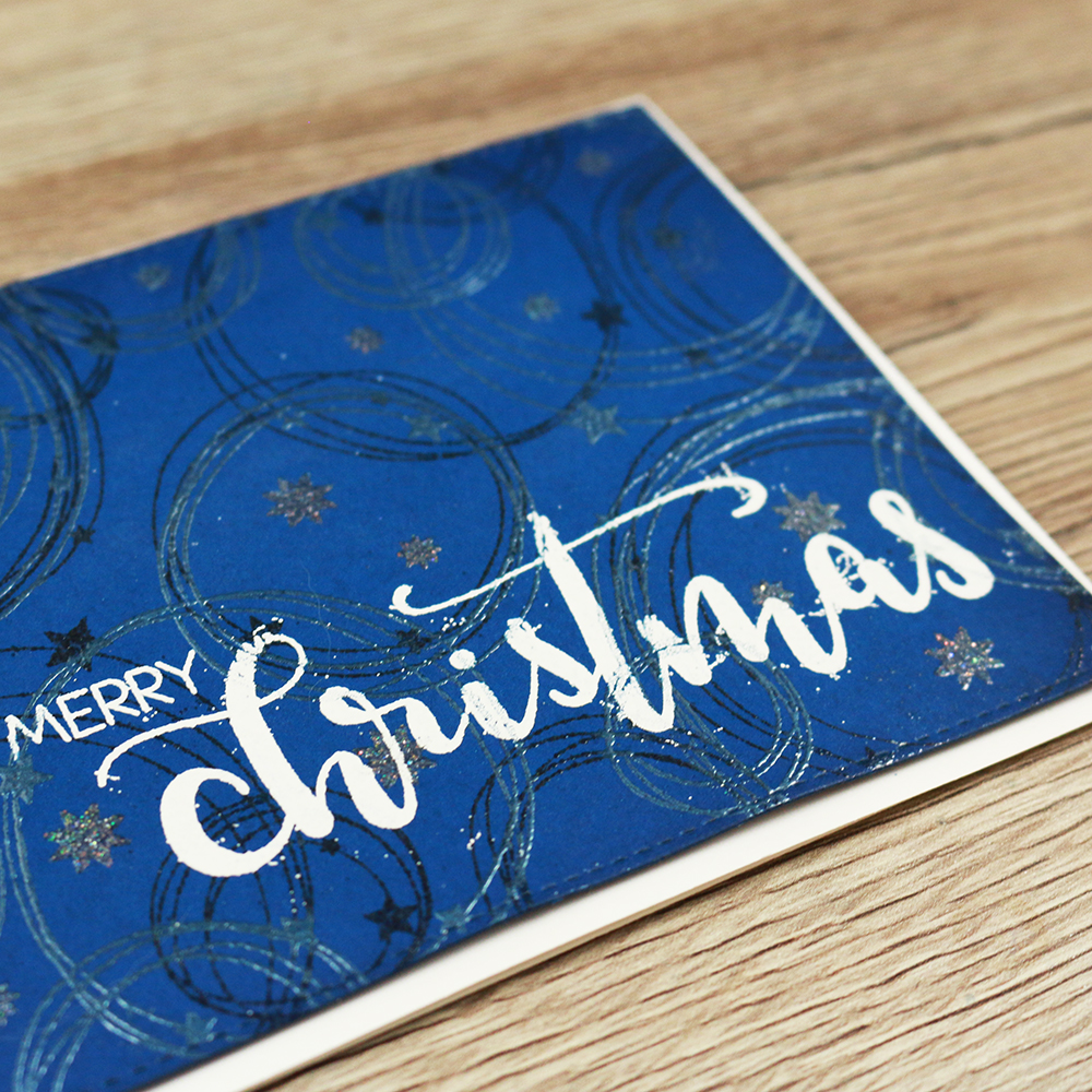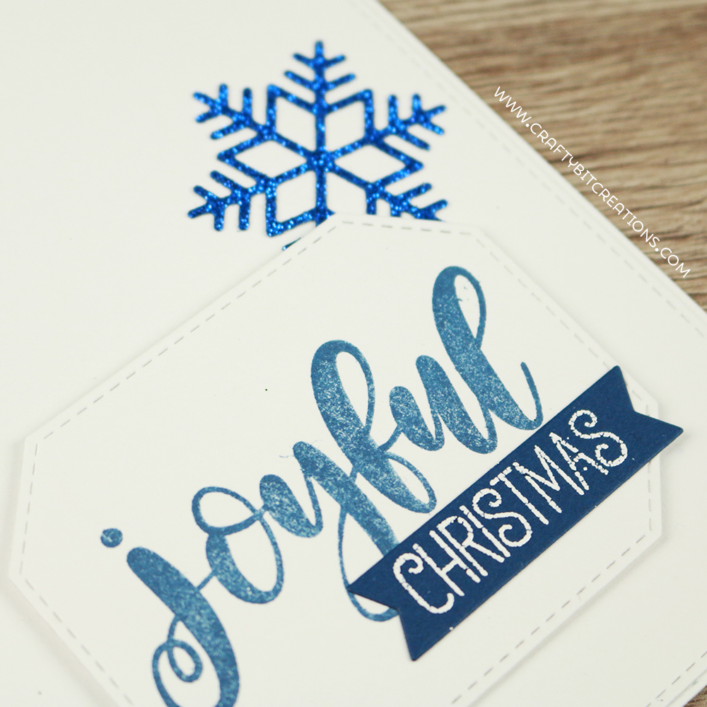 I blended Versamark in over the stencil onto some Simon Says Stamp Soft Navy Cardstock and the brushed the Perfect Pearls over it. I den used a Mini Mister to mist water over the cardstock to set the Perfect Pearls. I finished of the background part by blending some Chipped Sapphire on the edges on the navy cardstock.
