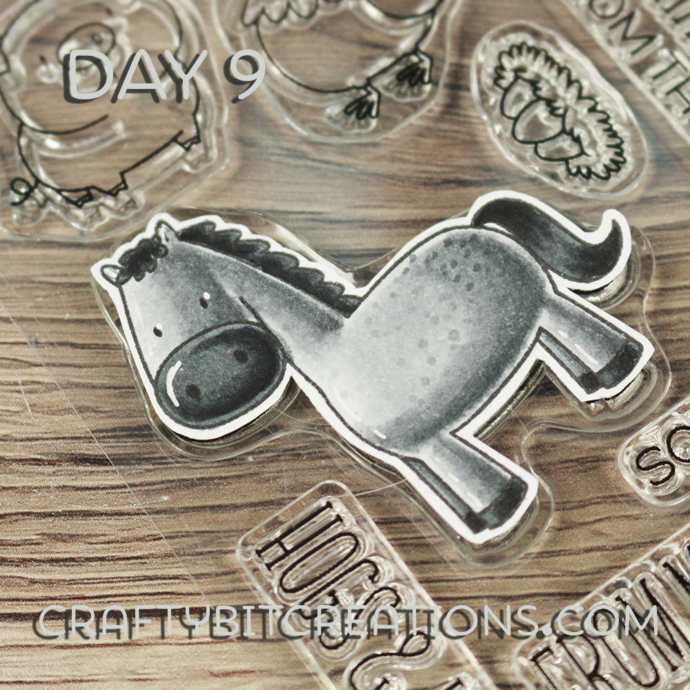 Today I have a silver horse for you, after getting a comment on my white/light grey unicorn say ing I could call it silver, it stuck in my mind. So when I came to color the horse that was all I could think about, these beautiful silver horses with darker dots. So that was how I came up with this color scheme, the horse is from the “The Whole Herd” Stamp set by My Favorite Things. I’m having so much fun coloring theses cute farm animals.