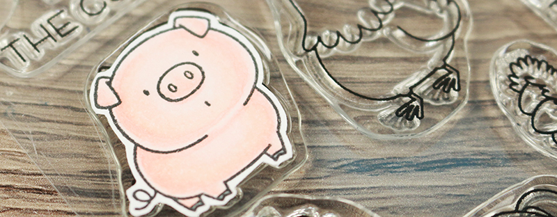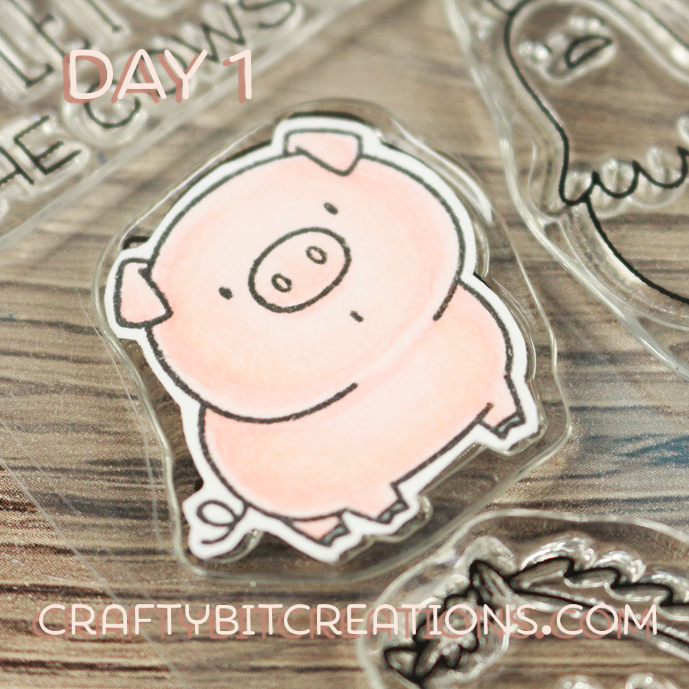 Let’s continue today with another stamp from the “The Whole Herd” stamp set from My Favorite Things. Today I have a cute little piggy for you, with a nice not to pink piggy pink color combination.