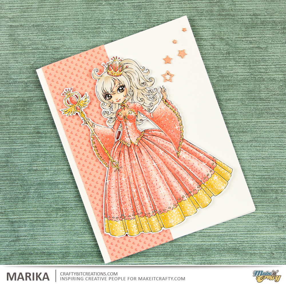 At Make It Crafty you can find loads of digital stamps and some of them has like Alwina the Good Witch from the previous card post accessories that you can add to the main image. When Alwina was released there where a couple of other stamps that also was released with the same possibility. And by the way if you aren’t a fan of halloweeny images or just want some more summery images, there was also a release with summer babes in bikinis that also have a bunch of accessories. But back to the card at hand.