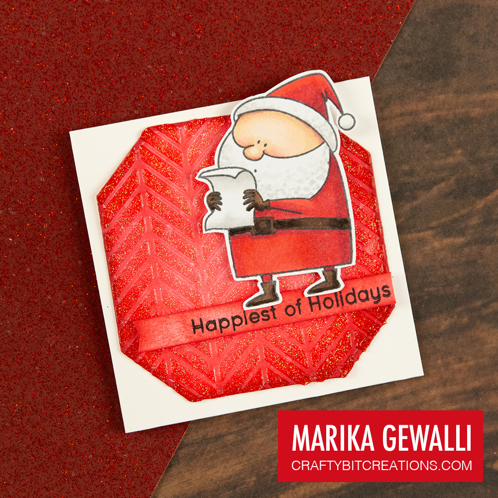 For the fourth and last card I added the glitter on top of the gel. I think I loved this background the most, however the glitter do transfer a bit, so if you don’t like getting glitter everywhere this technique might not be for you.