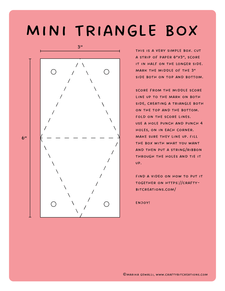 I love cute little boxes, and this Mini Triangle Box is just up my alley! I wanted to make a box that would use my 6″x6″ paper, however I also wanted to use the fun color scheme that I’ve been using all trough this week. And after deep diving into my pile of pattern papers I just couldn’t find one that was perfect for this project.