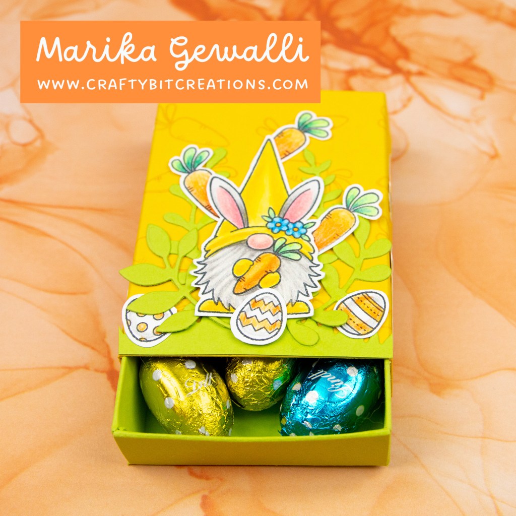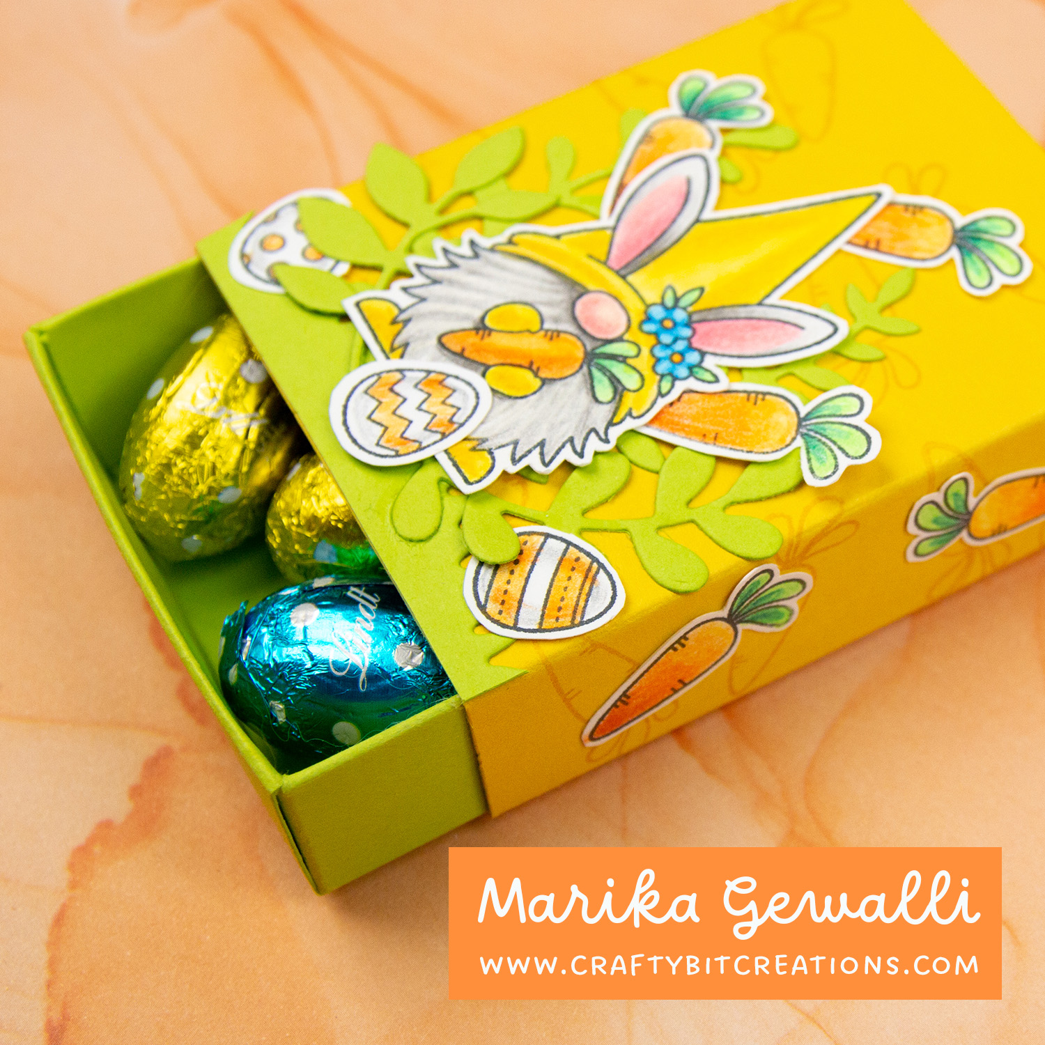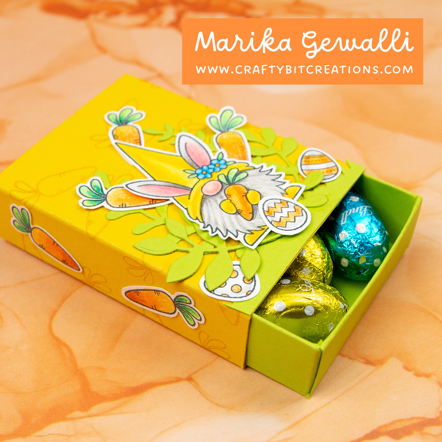 With easter coming closer and closer I thought I would show you how to make a mini easter matchbox. This matchbox is sized to fit 8 Lindth Chocolate Mini Eggs, and could be perfect for small table gifts on your easter lunch, or just to give as a little easter gift.