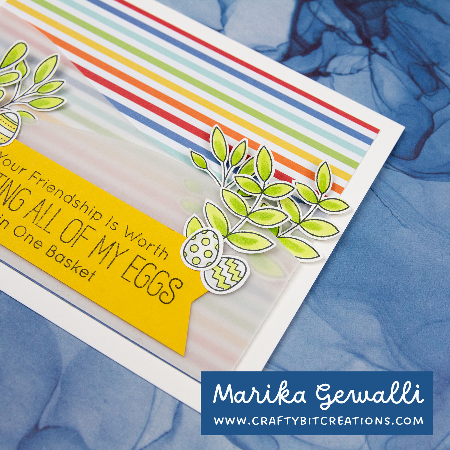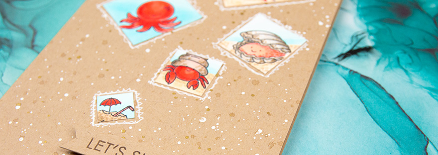 When working with sketch challenges I try think out of the box. Working with sketch challenge 585 I really had to think. I did try another one before settling on this one. When seeing the challenge my first thought went to bubbles or balloons but I felt that was so on the nose. After playing a bit I decided to go with squares that was falling. And into those squares I stamped some of the creatures from the IslandShell-ebrations Stamp Set.