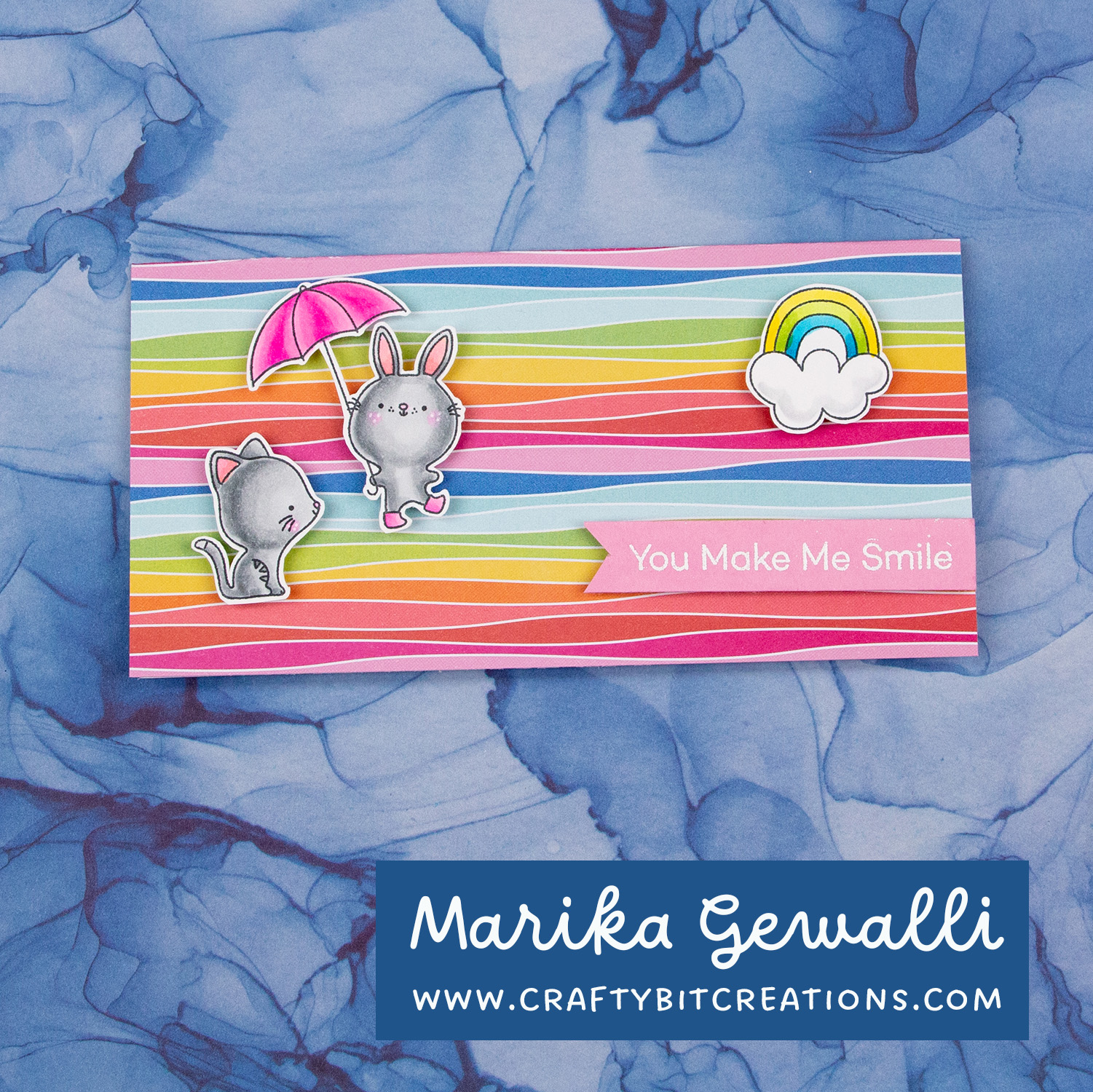 I wanted to dive into my new stamps I last week as soon as I got them. While recording the haul video I released on Wednesday I remarked that the Sending Sunshine & Smiles stamp set would be great for mini cards. And as I love mini cards I decided to make a mini spring cards tutorial. I decided to also use the Repeating Rainbow Background Stamp on all the cards because rainbows and spring goes hand in hand.