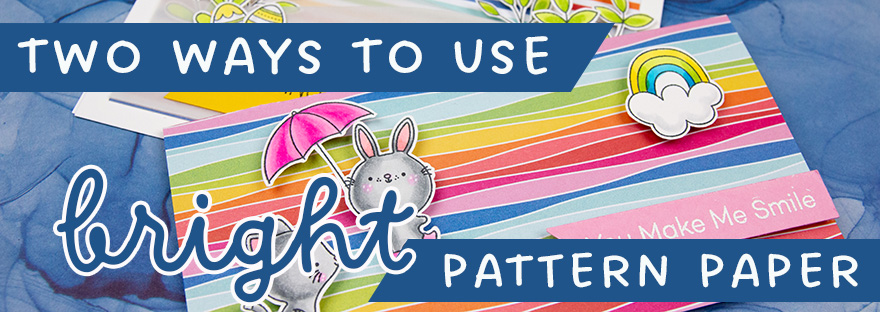 I completely love the Happy Patterns Paper Pad, it’s so bright and rainbow! It also have quite a lot of contrast with the bright colors together but also the bright white areas. I sometimes struggle using those kind of papers and I thought I’ll take the bull by it’s horns so to say. So today I’m showing you two ways of using bright pattern papper for my cards.
