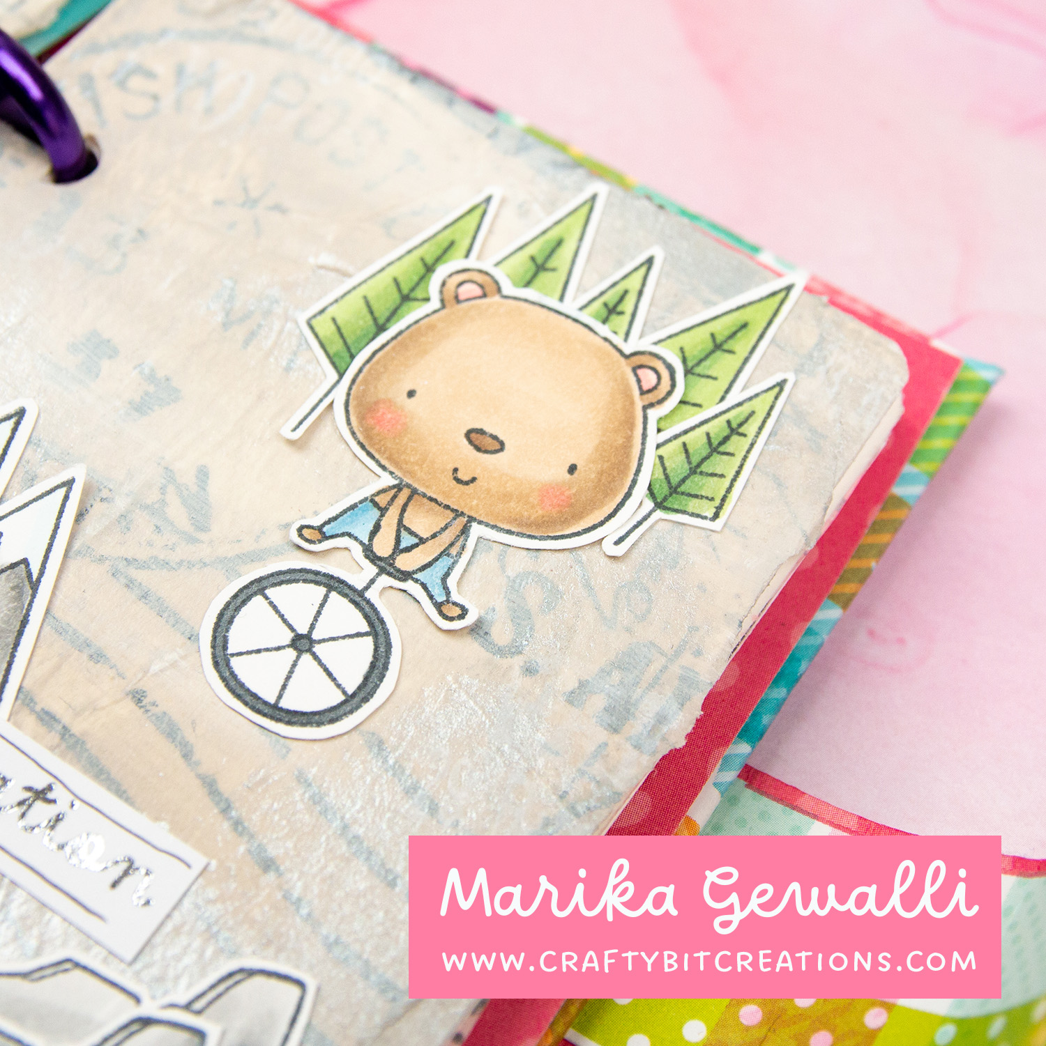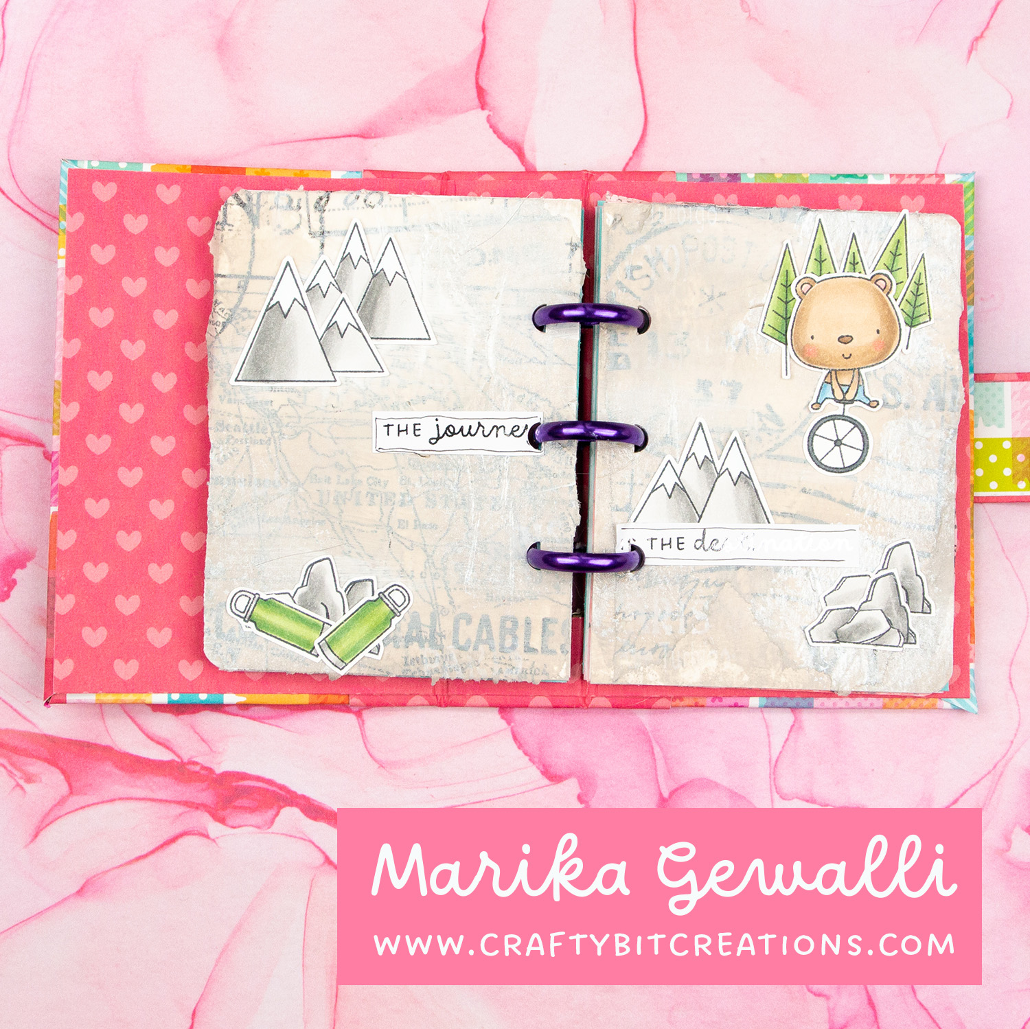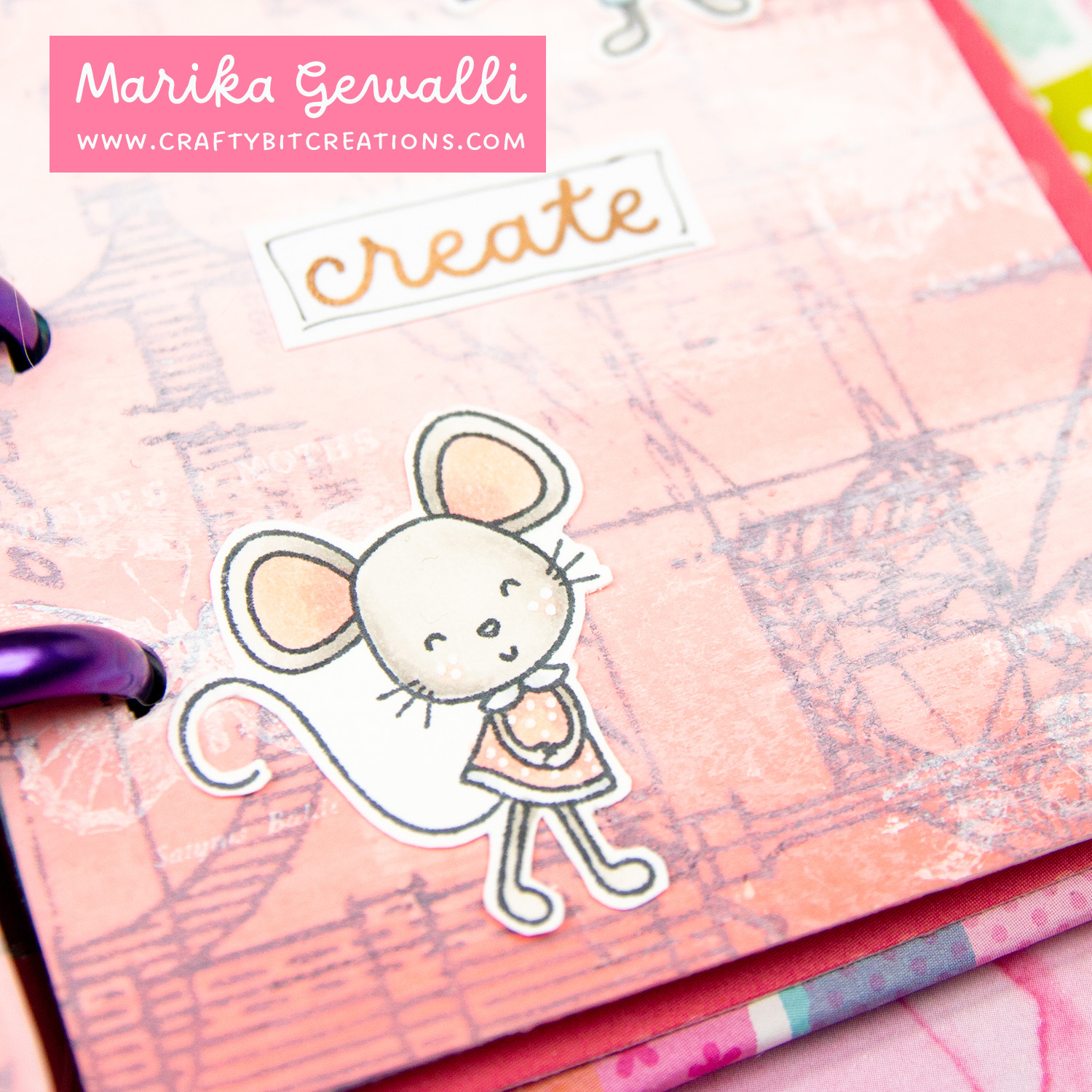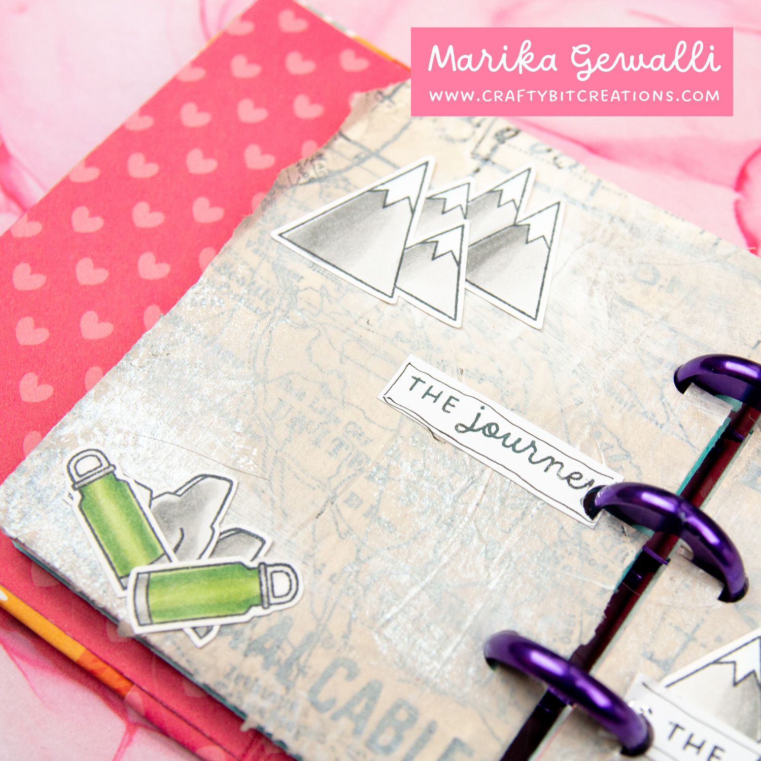 I’m a big fan of Vicky Papaioannou and her style of art journals. The are a perfect mix of messy and control. So decided to use that style but in a mini format and with my stamps and coloring that I love. My mini art journal will be a hodge podge of different styles as I play and learn, but I’m ok with that. My word of the year is creativity and that is what I will embrase.