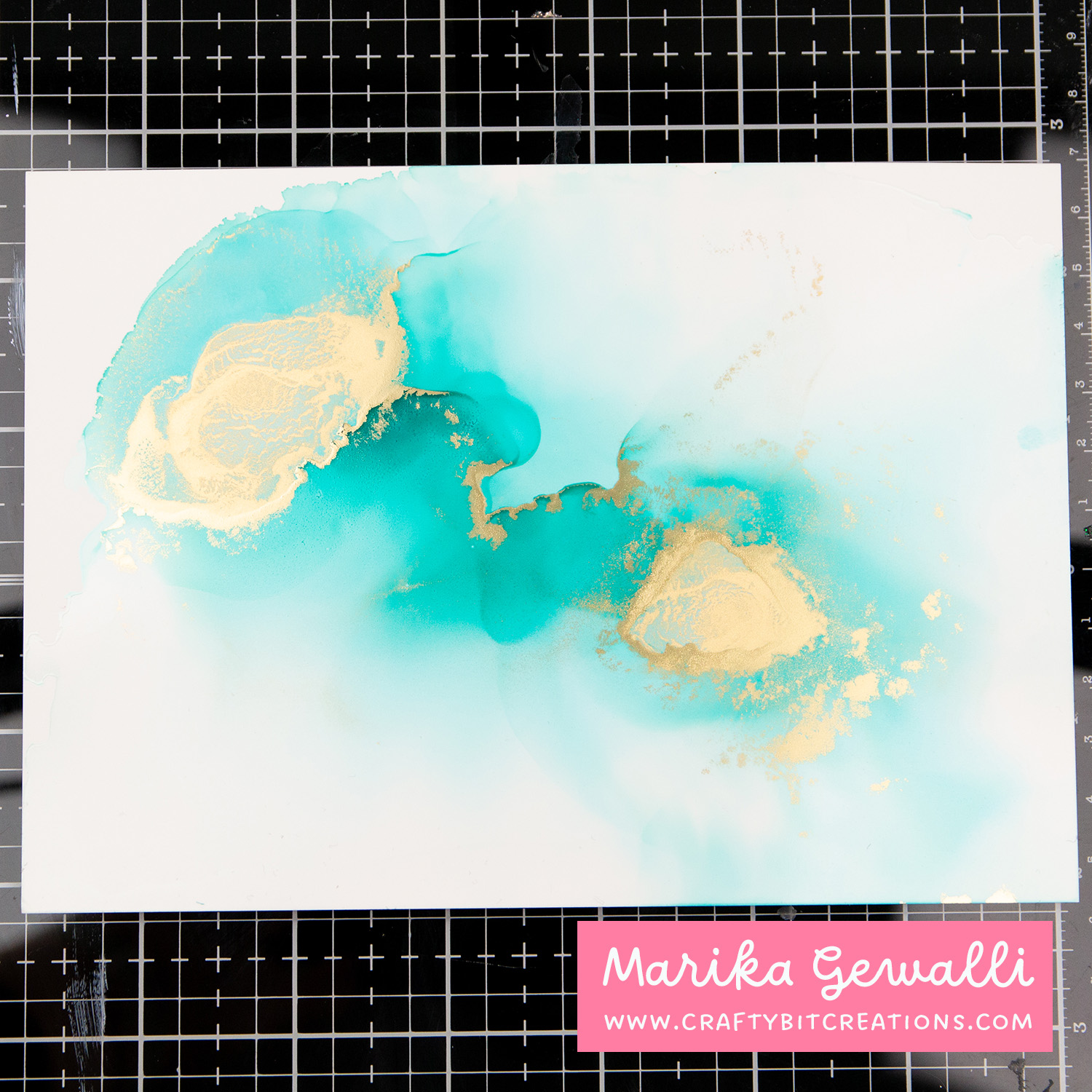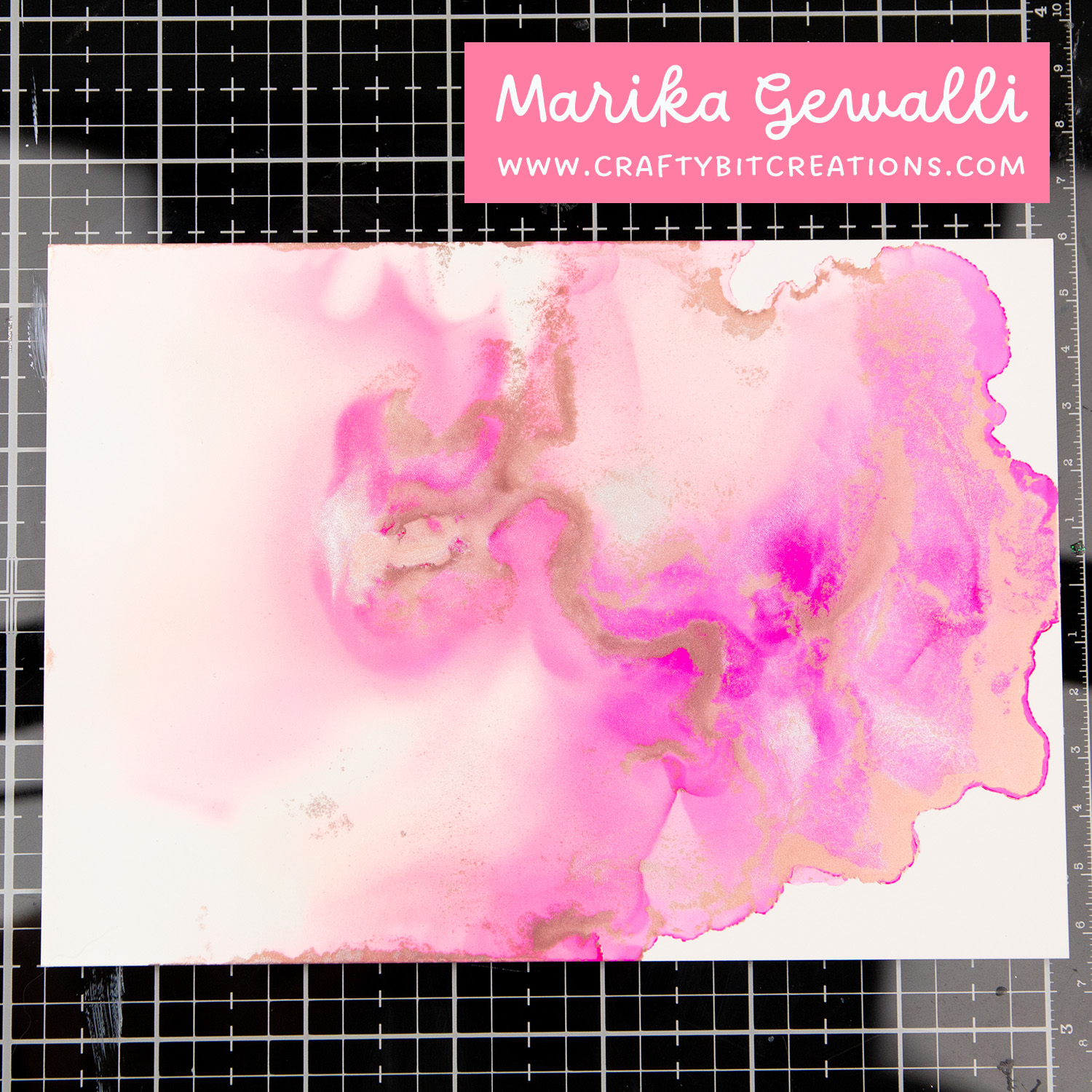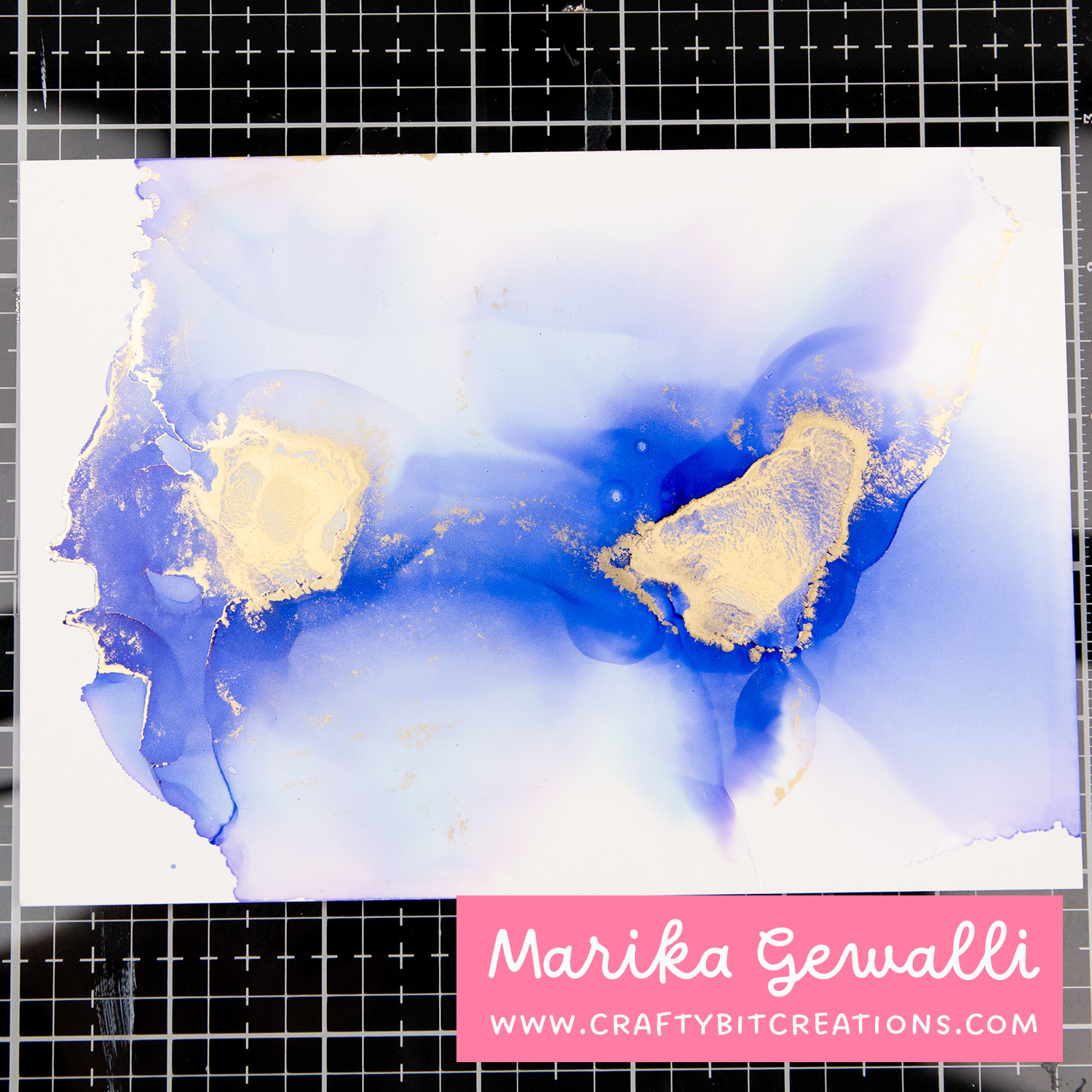 But a little while ago I picked some Alcohol Blending Solution and a alcohol ink air blower and I finally found some time to play with them. And it was so much fun! The only regret I have is that I didn’t pick up more yupo paper, as now I’m all out and I just want to make more backgrounds!