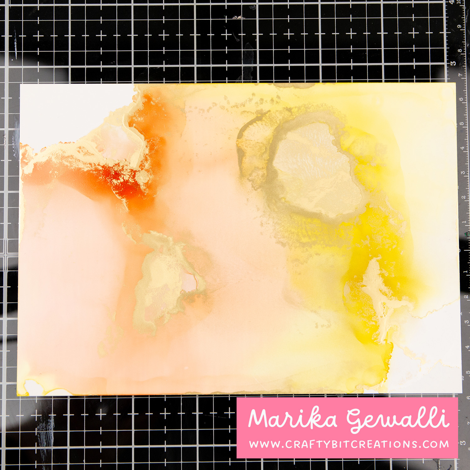 I have all of these alcohol inks in my stash but I never use them. One of the reason is that I only bought the inks (and some mixatives) and when using them on yupo you only get very colorful results. And I felt that my backgrounds was so over powering, I wanted a more soft alcohol ink background.