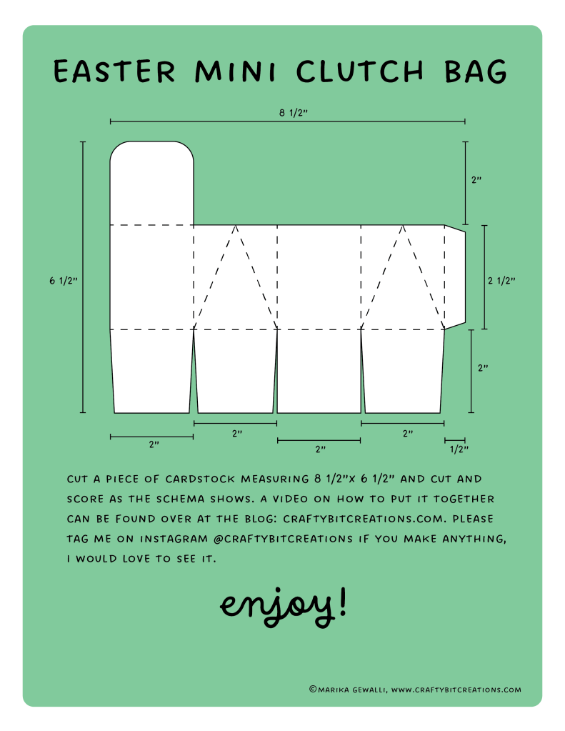This is my last easter project for the year, I hope you have enjoyed them. This is an easter mini clutch box and they are made to fit 6 Lindt Mini Chocolate Eggs. But they can fit anything small that you could think of. You can also go the clutch version or add a “handle” and make it a purse.