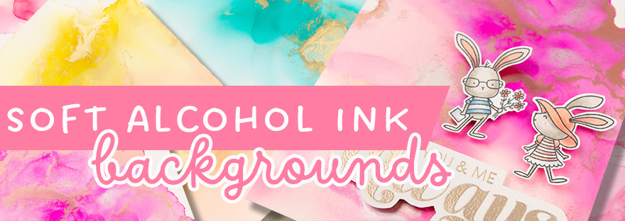 To get soft backgrounds there is a couple of things you want to do. The first is pour a nice blob of alcohol blending solution on your yupo, this will help the ink move faster (it’s like when you cover your watercolor cardstock in water before going in with your watercolors). Then you add a drop or two of your ink of choice and then start blowing. When you gotten a nice layer started you can add alloys and continue to blow around the ink and the alloys. A little goes a long way. For more tips see the video!
