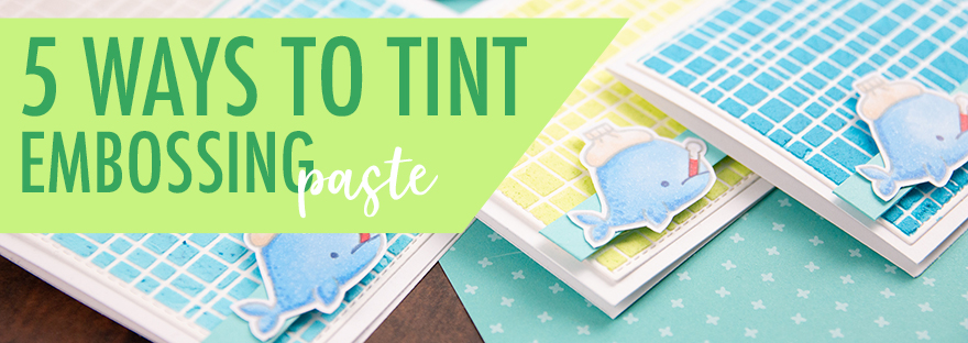 In todays video I’m showing you 5 ways to tint your embossing paste. I love experimenting with the materials I have in my craft room, trying to extend them as much as possible. One way of doing that is to go for the white and transparent mediums first and then use the coloring materials you already have in your craftroom to get all the colors you want. I choose five coloring mediums, some of them are new in my craft room and some are old and rarely used. I’ve choosen to sort of stay in one color group both because it makes it easier to compare, but also so I could easier make all of them in to similar cards.